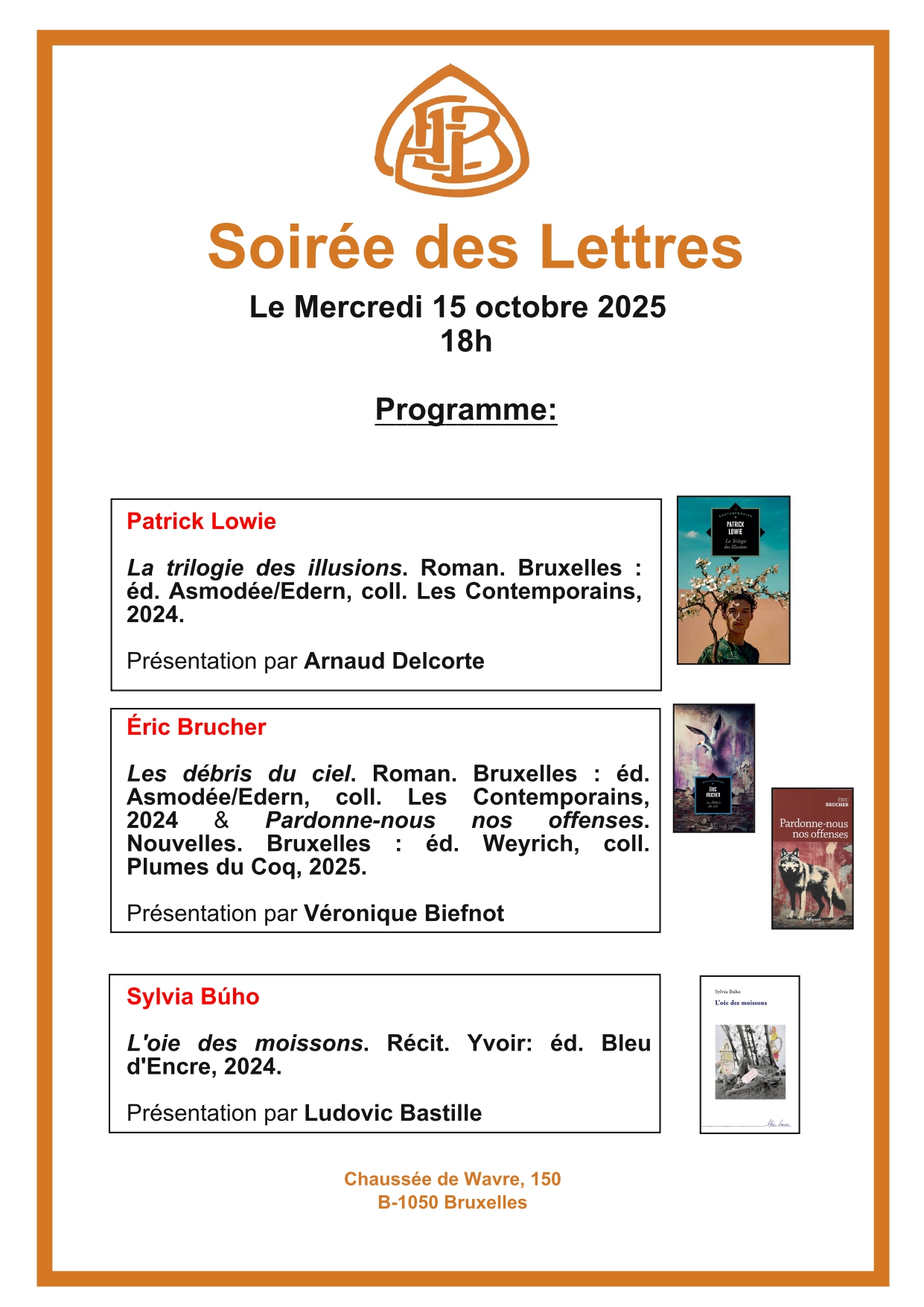 Soirée des Lettres- Mercredi 15 octobre 2025, 18h.