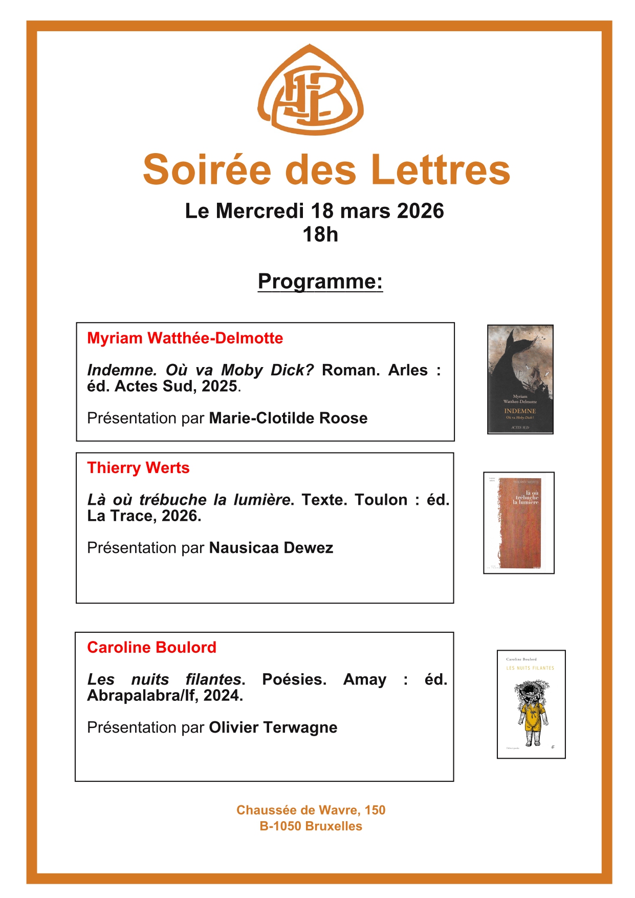 Soirée des Lettres - Mercredi 18 mars 2026, 18h.
