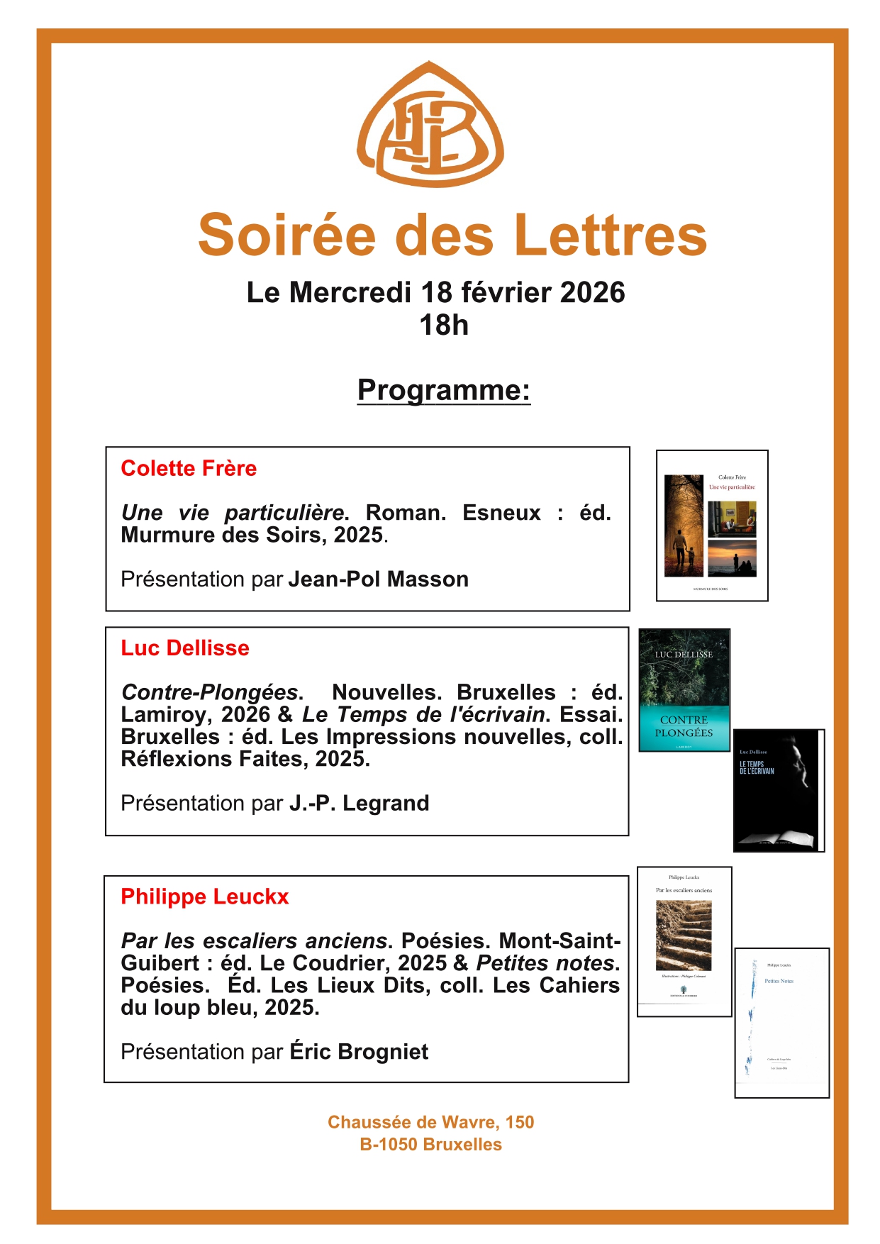 Soirée des Lettres - Mercredi 18 février 2026, 18h.